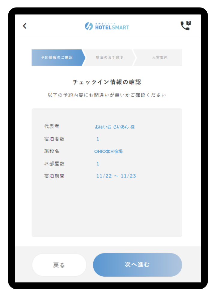 ※予約サイトで入力した情報が自動的に反映されている場合もあります。